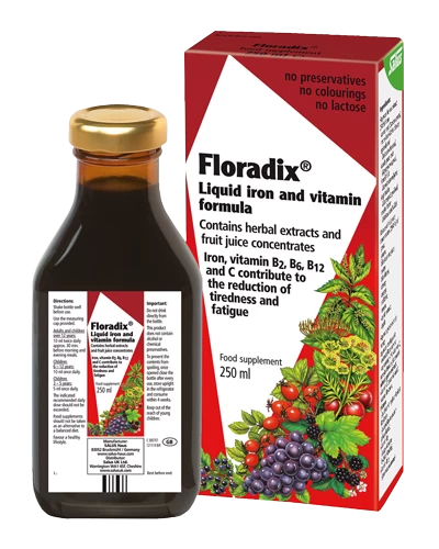 Floradix contributes to the reduction of tiredness and fatigue and to normal energy yielding metabolism.