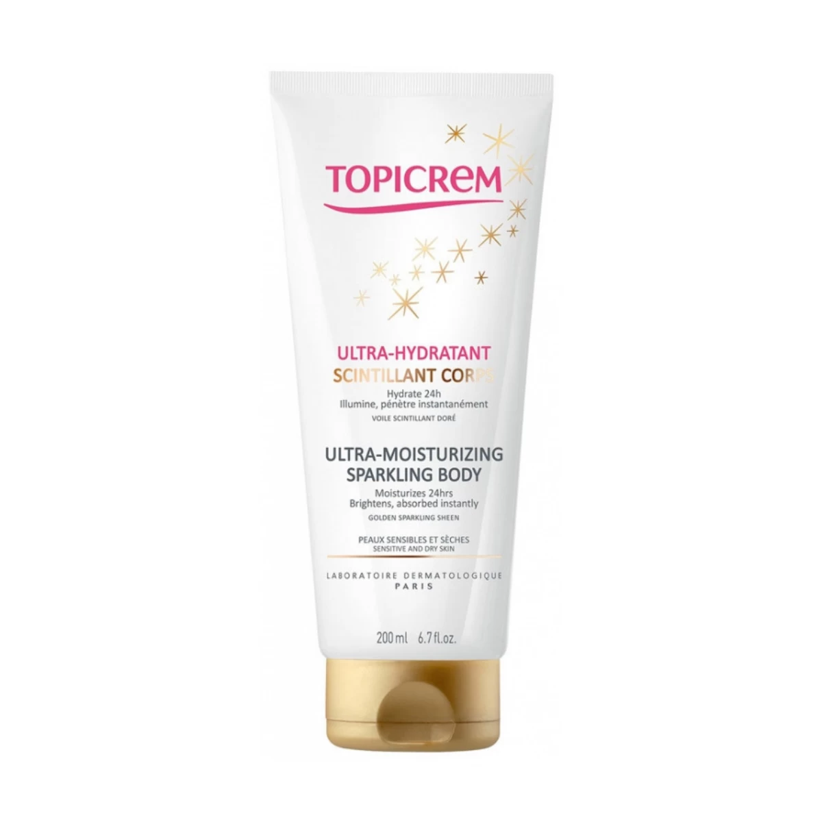 Topicrem Ultra-Moisturizing Sparkling Body 200ml on an unctuous emulsion form, penetrates rapidly in the skin, to moisturise during 24 hours and highlight the skin.